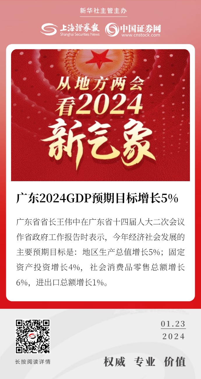预期目标增长5%——广东担起2024年“经济大省挑大梁”的新任务,亮出新预期目标。照此预测,2024年广东省经济总量将迈上14万亿元的新台阶。